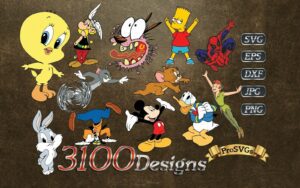 Cartoon Designs SVG, EPS, PNG, JPEG, 3200 , Cut Files DVD